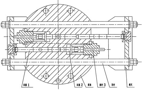 泵體內(nèi)二組活塞,每組活塞由1個(gè)工作塞和2個(gè)控制活塞組成,當(dāng)一組活塞中的工作活塞完成吸油過程時(shí),另一組活塞中的工作活塞則把潤(rùn)滑脂壓向出油口。如下圖所示,當(dāng)滑叉向左運(yùn)動(dòng)時(shí),上組活塞完成吸油,下組活塞完成壓油,開始新的工作循環(huán)。這時(shí)下組活塞1、2向左運(yùn)動(dòng),活塞2在彈簧力作用下到達(dá)極限位置關(guān)閉出口,而活塞1繼續(xù)向左運(yùn)動(dòng),這時(shí)活塞2和1之間形成真空,其真空度隨活塞1的左移不斷增大,滑叉運(yùn)動(dòng)到極限位置活塞1打開吸油口,潤(rùn)滑脂從吸油口吸入,如彈簧力不足,沒將活塞2推到極限位置,此時(shí)推桿3會(huì)在滑叉的推動(dòng)下強(qiáng)制地把活塞2壓到極限位置,同時(shí)上組活塞1、2、3向左運(yùn)動(dòng),活塞1先關(guān)閉吸油口,被吸入的潤(rùn)滑脂在活塞1的推動(dòng)下向左移動(dòng),當(dāng)活塞2把出油口打開時(shí),活塞2和推桿3 的運(yùn)動(dòng)也就停止,活塞1繼續(xù)左移,把潤(rùn)滑脂從出油口壓出,活塞1、2接觸滑叉也已運(yùn)動(dòng)到極限位置完成半個(gè)循環(huán)的工作,如此周而復(fù)始地循環(huán),二組活塞交替地將潤(rùn)滑油脂從出油口壓送出來,壓出的潤(rùn)滑脂經(jīng)泵裝置連接法蘭上的過濾器過濾后向系統(tǒng)供送。